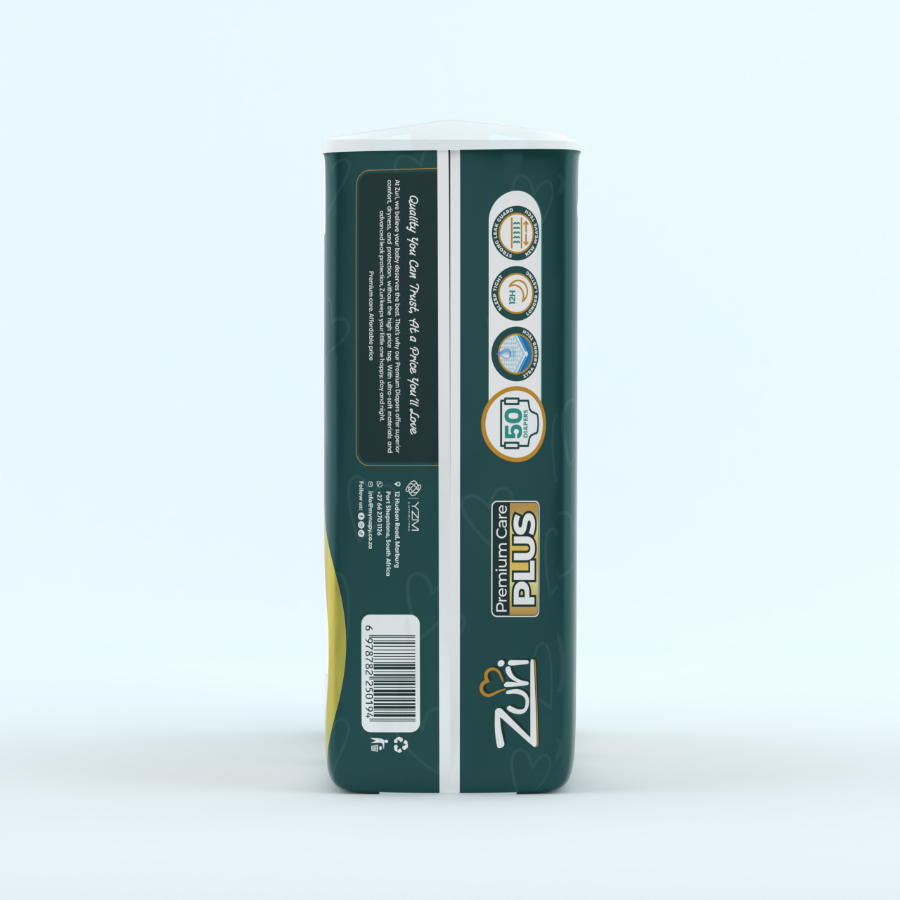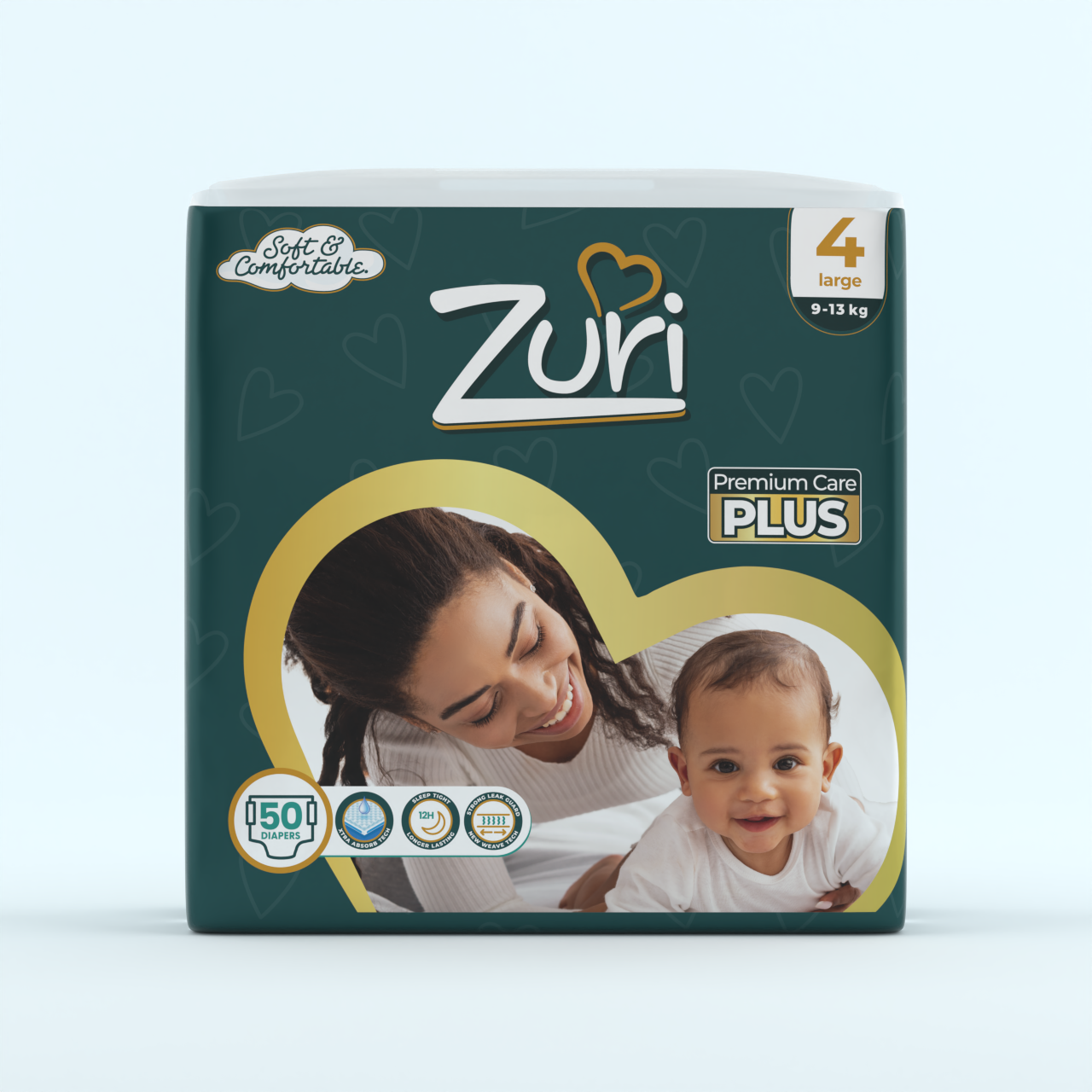 Discover Zuri Premium Care Plus Size 4 diapers for superior dryness. Enjoy 12-hour leak protection and ultra-soft comfort for your baby. Shop the 50-pack now!